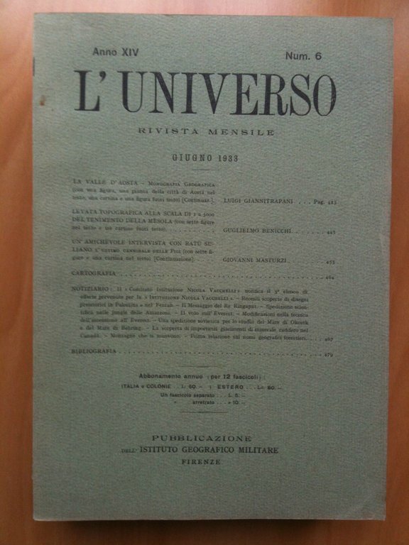 Rivista L'Universo Anno XIV - n^ 6 Giugno 1933