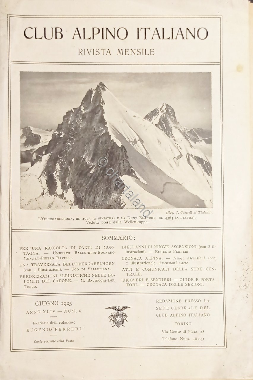 Rivista Mensile - Club Alpino Italiano N. 6 - Vol. XLIV - 1925