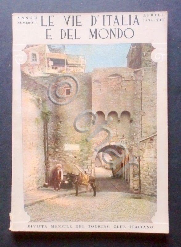 Rivista Mensile del Touring Club Italiano - Le Vie d'Italia e del mondo - Anno II - n. 4 - Aprile 1934, pag. 130 con numerose illustrazioni. Interessante pubblicazione con belle copertine illustrate e pubblicità, fonte ricchissima di informazioni e curiosità per studiosi, appassionati e collezionisti