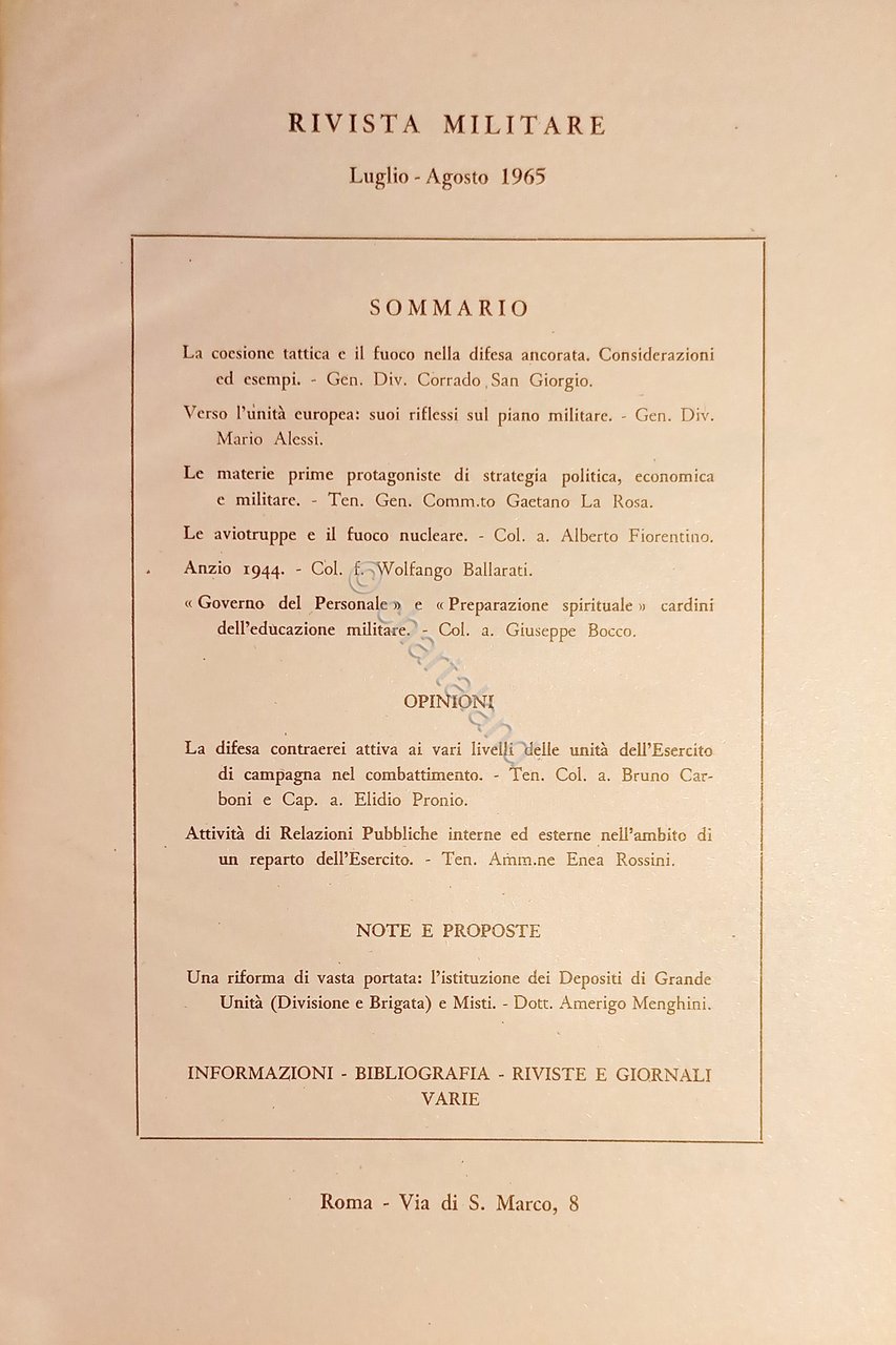 Rivista Militare - Anno XXI - N. 7-8 Luglio - Agosto 1965 Vedi Indice
