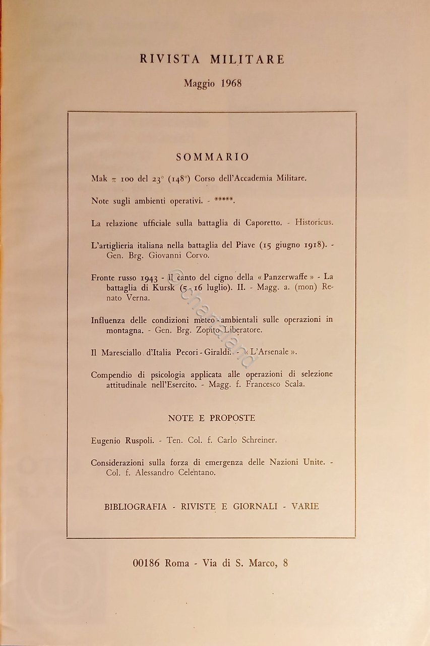 Rivista Militare - Anno XXIV - N. 5 - Maggio 1968 Testo in lingua italiana. Pagine 130 ca. con illustrazioni e tavole. Copertina morbida. Condizioni molto buone.