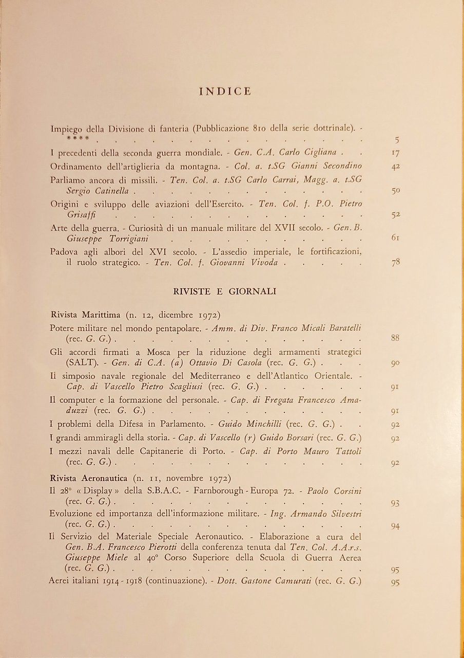 Rivista Militare - Anno XXIX - N. 1 - Gennaio 1973 Vedi Indice