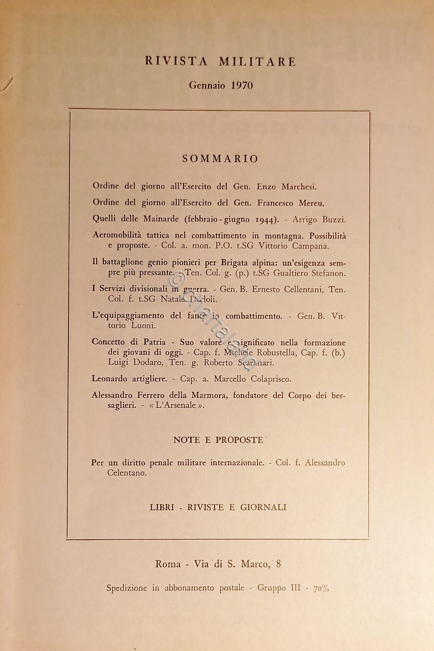 Rivista Militare - Anno XXVI - N. 1 - Gennaio 1970 Vedi Indice
