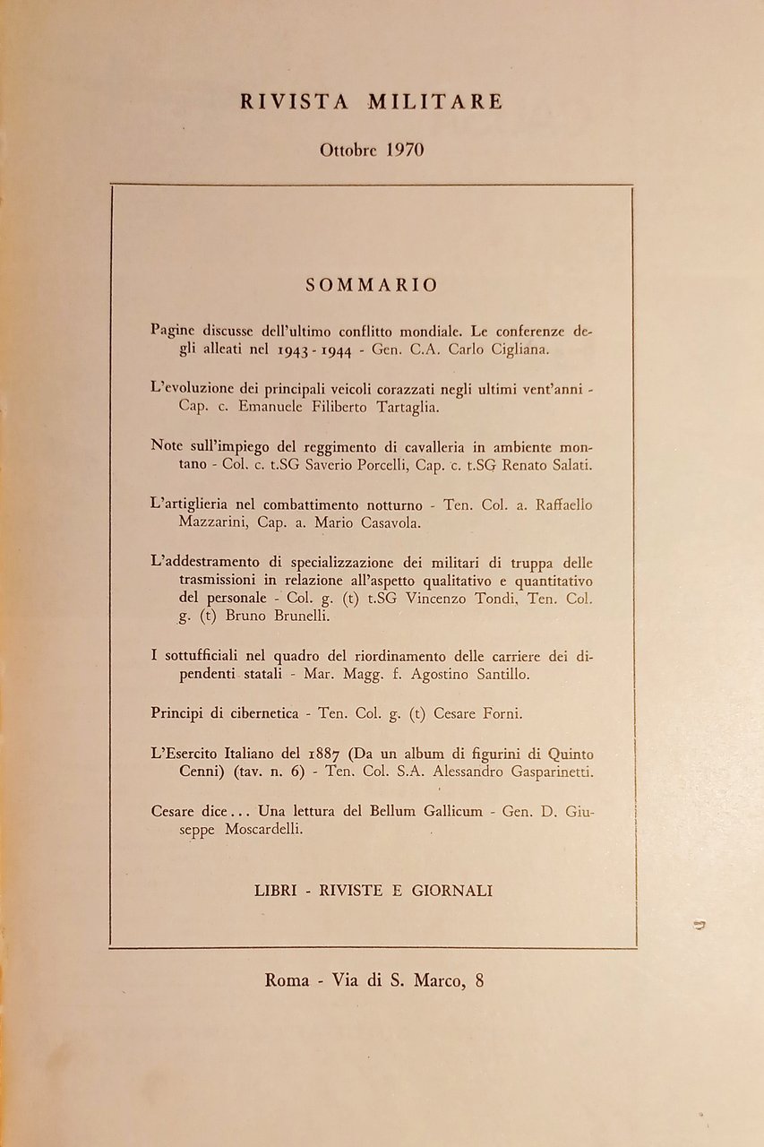Rivista Militare - Anno XXVI - N. 10 - Ottobre 1970 Vedi Indice