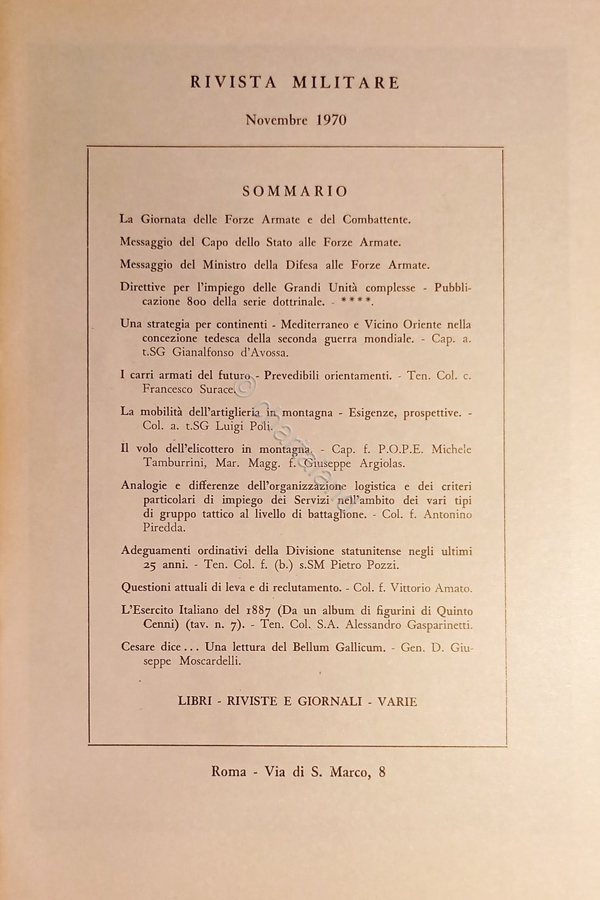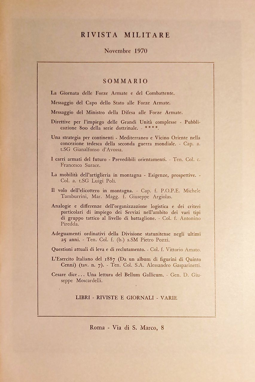 Rivista Militare - Anno XXVI - N. 11 - Novembre 1970 Vedi Indice