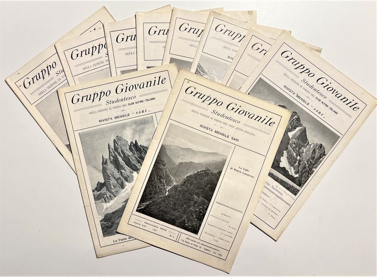 Rivista Sari - Gruppo Giovanile Studentesco del C.A.I. - Club Alpino Italiano - Annata Completa 1914 Testo in lingua italiana. Pagine 12 ca./ ciascuna Copertina morbida. Condizioni molto buone con piccoli segni del tempo come da foto.