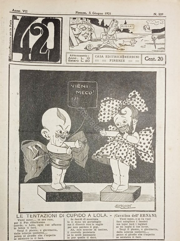 Rivista Satirica Umoristica - IL 420 - Anno VII - N. 339 - 1921 Testo in lingua italiana. Pag. 6 con illustrazioni Condizioni molto buone