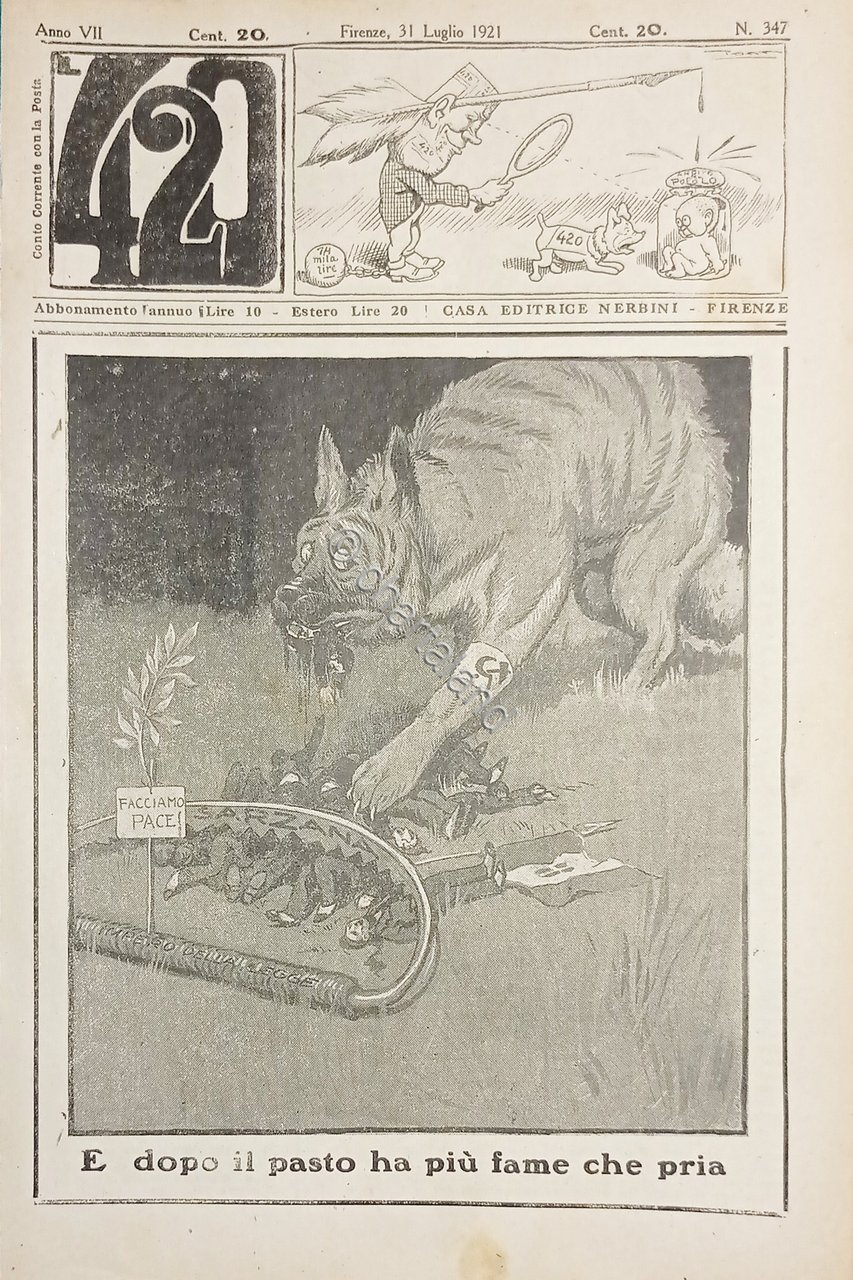 Rivista Satirica Umoristica - IL 420 - Anno VII - N. 347 - 1921 Testo in lingua italiana. Pag. 8 con illustrazioni Condizioni molto buone