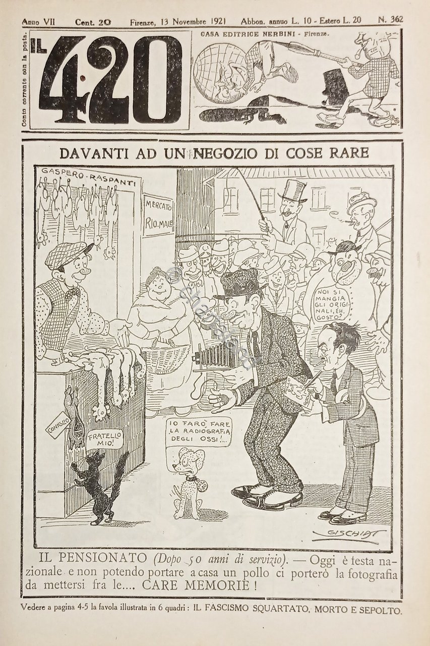Rivista Satirica Umoristica - IL 420 - Anno VII - N. 362 - 1921 Testo in lingua italiana. Pag. 8 con illustrazioni Condizioni molto buone