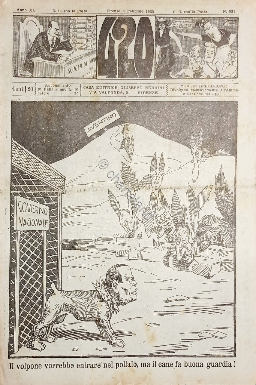 Rivista Satirica Umoristica - IL 420 - Anno XI - N. 531 - 1925 Testo in lingua italiana. Pag. 8 con illustrazioni Condizioni molto buone