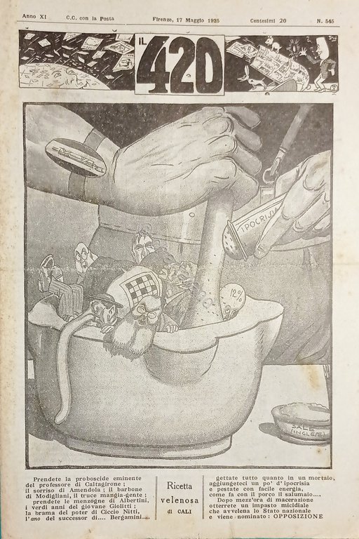Rivista Satirica Umoristica - IL 420 - Anno XI - N. 545 - 1925 Testo in lingua italiana. Pag. 8 con illustrazioni Condizioni molto buone