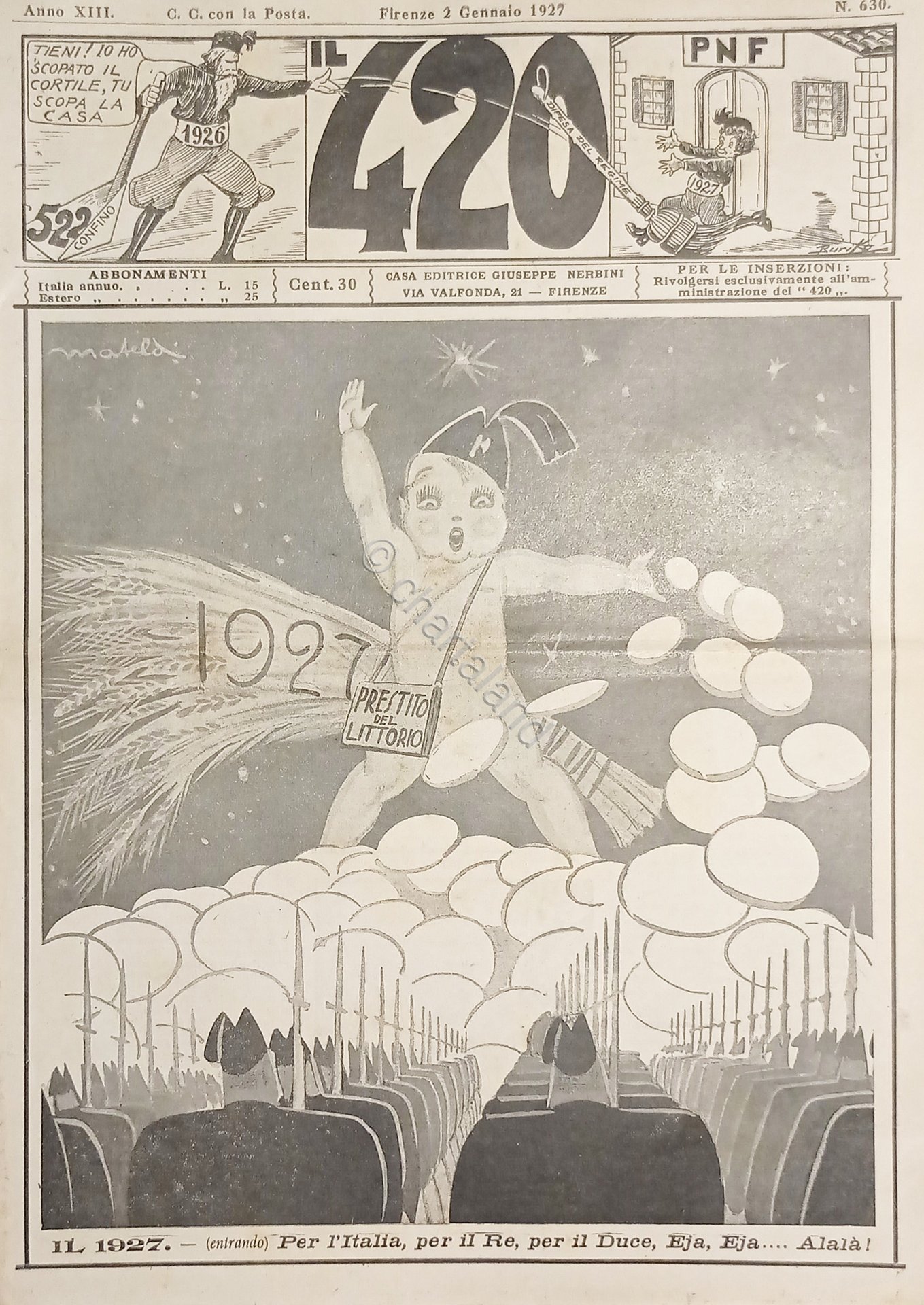 Rivista Satirica Umoristica - IL 420 - Anno XIII - N. 630 - 1927 Testo in lingua italiana. Pag. 8 con illustrazioni Condizioni molto buone