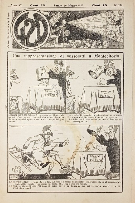 Rivista Satirica Umoristica - IL 420 - N. 286 - Anno VI - 1920 Testo in lingua italiana. Pag. 6 con illustrazioni Condizioni molto buone