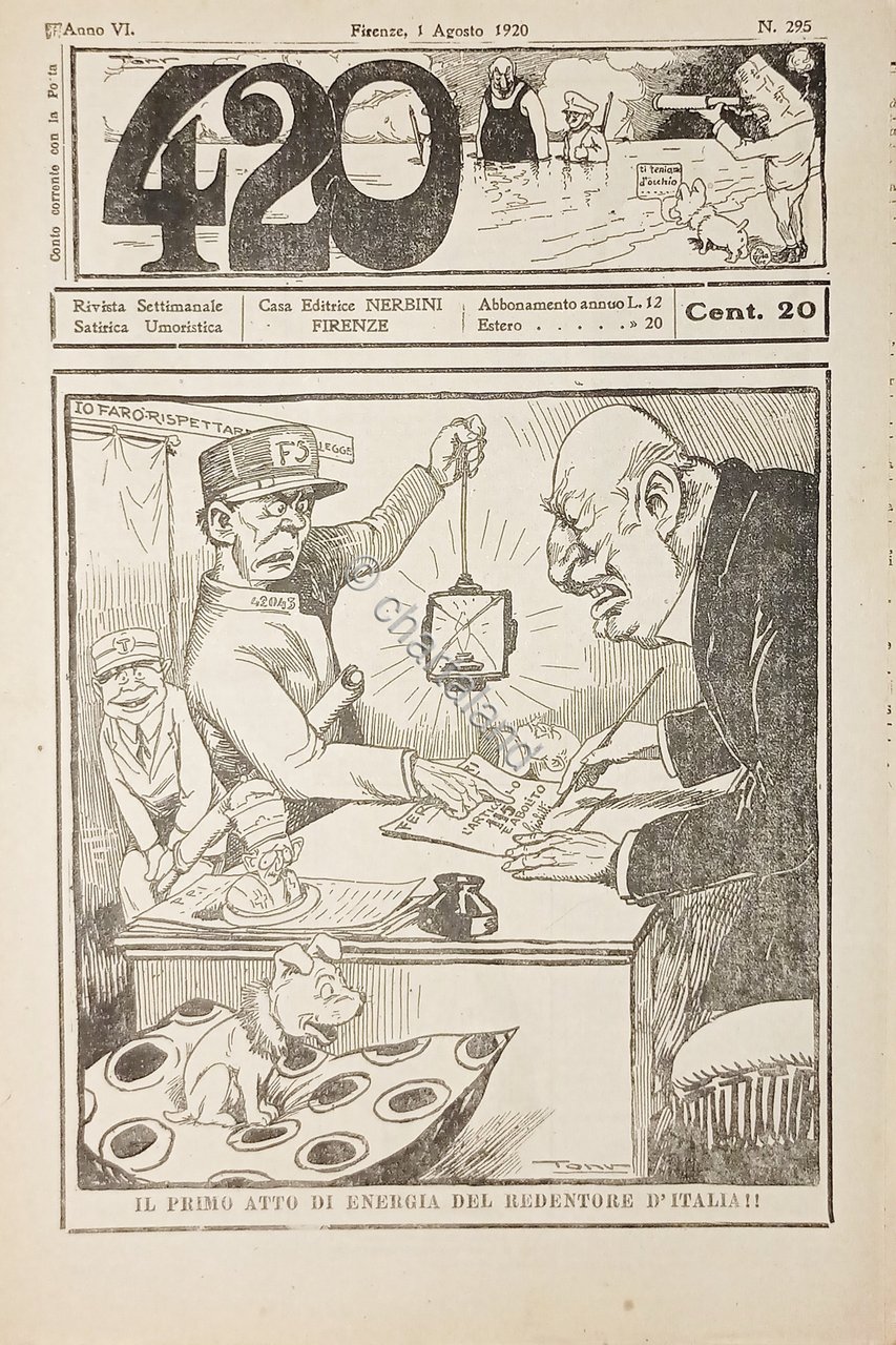 Rivista Satirica Umoristica - IL 420 - N. 295 - Anno VI - 1920 Testo in lingua italiana. Pag. 6 con illustrazioni Condizioni molto buone