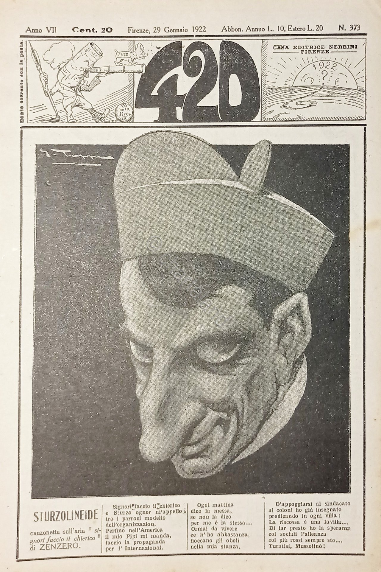 Rivista Satirica Umoristica - IL 420 - N. 373 - Anno VIII - 1922 Testo in lingua italiana. Pag. 6 con illustrazioni Condizioni molto buone