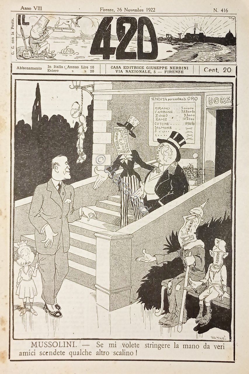 Rivista Satirica Umoristica - IL 420 - N. 416 - Anno VIII - 1922 Testo in lingua italiana. Pag. 6 con illustrazioni Condizioni molto buone