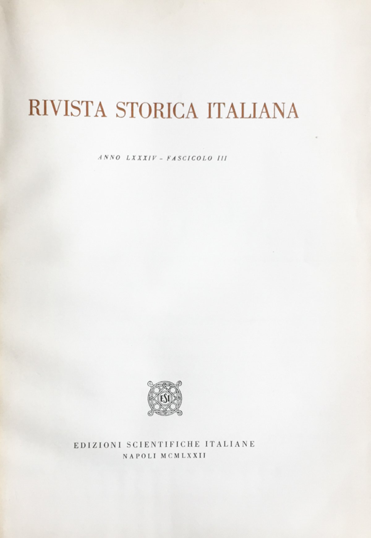 Anno LXXXXIV (1972) fasc.III : Limiti della ricerca nella mitologia greca, Studi recenti di storia sociale e religiosa in Francia, le stanchezze di Clio,Ernesto Buonaiuti storico e altro. 945 � Ba In Ottavi (15-23cm ) Ottimo (Fine) Ottimo