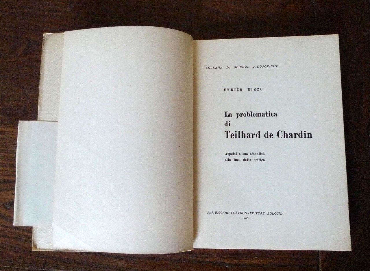 Enrico Rizzo,LA PROBLEMATICA DI TEILHARD DE CHARDIN.Aspetti e sua attualità alla luce della critica.Prof. Riccardo Pàtron Editore, Bologna 1965,brossura, 21,5x16 cm., pp.155,è conservata la fascetta editoriale,COLLANA DI SCIENZE FILOSOFICHE,peso: g.300