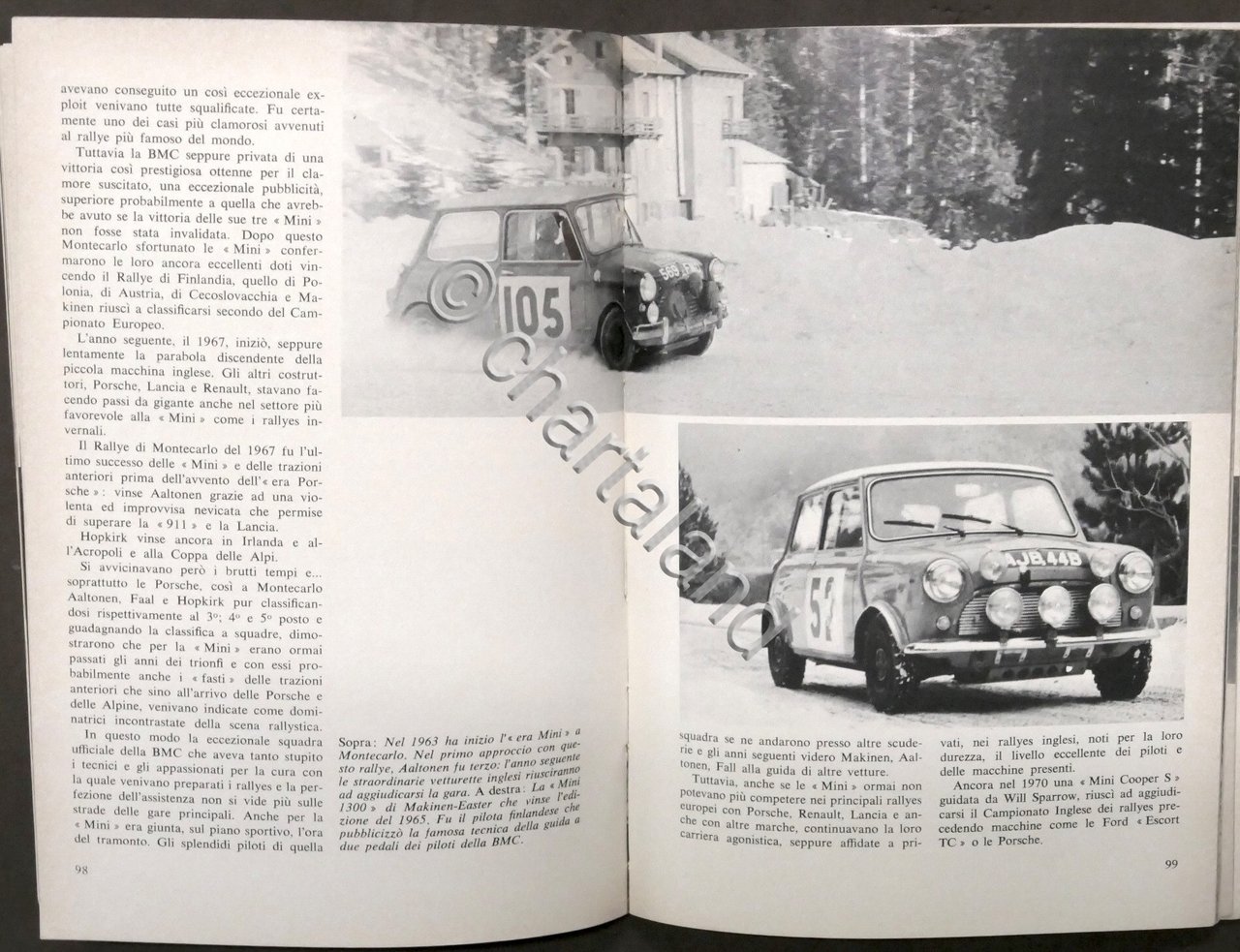 Roberto Bonetto - Rallyes - 1^ ed. 1971 Centocinquantotto fotografie di Franco Varisco, Franco Papetti, Corrado Millanta, Marcello Mineri; tecnica di guida di Amilcare Ballestrieri e Daniele Audetto ; prefazione di Cesare Fiorio Pag. 160 Copertina morbida - Testo in italiano. Buone condizioni generali. Lieve macchia al bordo esterno delle prime 20 pagine e del frontespizio.