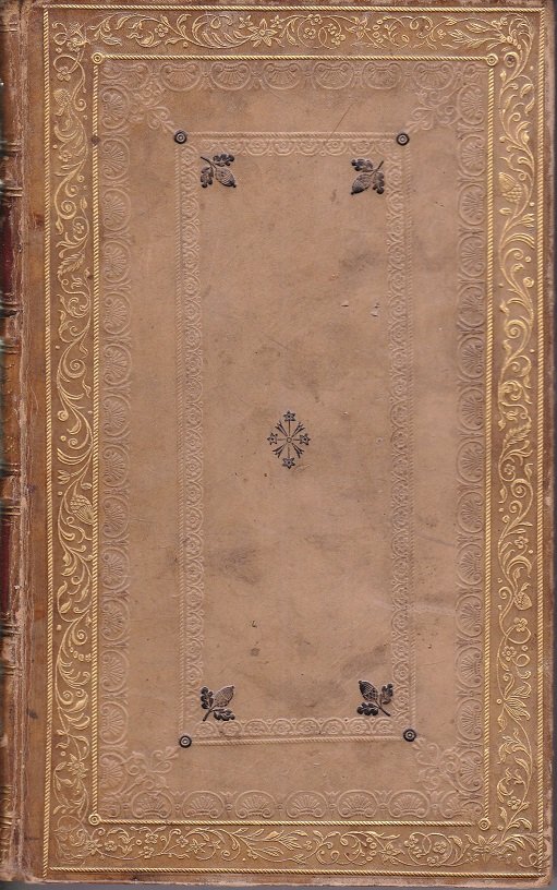 Sehr hübscher Einband: goldgeprägtes florales Ornamentband mit Eichelmotiven, blindgeprägtes Muschel-Ornament, blindgeprägtes Blumen-Ornament, kleine schwarzgeprägte Vignette , sowie schwarzgeprägte Eicheln mit Blättern. Vorder- und Rückdeckel gleich. Auch der Rücken ist reich verziert. - Very nice decorated covers and back. ################## LIEBE KUNDEN, WIR MACHEN UNSERE JÄHRLICHE FRÜHLINGSAKTION MIT 30% RABATT AUF DEN GESAMTEN BESTAND. DIE ERMÄSSIGUNG GILT AB SOFORT, DIE PREISE SIND BEREITS REDUZIERT. ÜBER IHR INTERESSE AN UNSEREN SELTENEN STÜCKEN WÜRDEN WIR UNS WIE JEDES JAHR SEHR FREUEN ###################