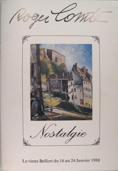 Catalogue pour l'exposition Salle des fêtes de Belfort, du 16 au 24 janvier 1988, plaquette in/4 broché, 19 pages. Illustrations en couleurs. Roger Comte est un peintre franc-comtois né à Belfort le 8 juillet 1913 et mort le 30 août 2006 à Montbéliard. Jean Cocteau l'appelait le « prince en espadrilles ». Le musicien Francis Décamps - fondateur du groupe Ange avec son frère Christian lui a consacré un album intitulé Hommage à Roger Comte, paru en 1997.