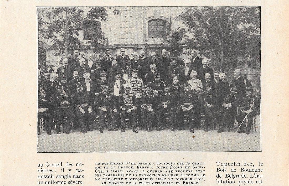 Roi Pierre de Serbe au moment de sa visite officiel en France. Stampa 1915