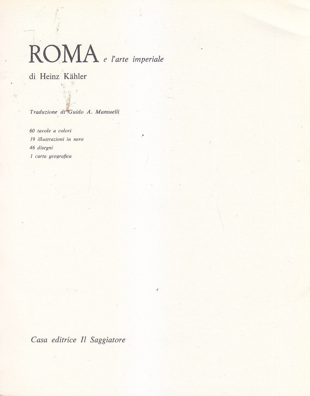 ROMA E L'ARTE IMPERIALE di Heinz Kahler 1963 il Saggiatore il marcopolo libro