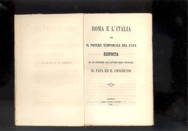 ROMA E L'ITALIA ED IL POTERE TEMPORALE DEL PAPA.<BR>RISPOSTA DI UN ITALIANO ALL'AUTORE DELL'OPUSCOLO IL PAPA ED IL CONGRESSO.