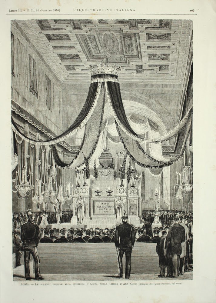 Roma. Le solenni esequie alla duchessa d'Aosta nella Chiesa dell'Ara Coeli. Stampa 1876