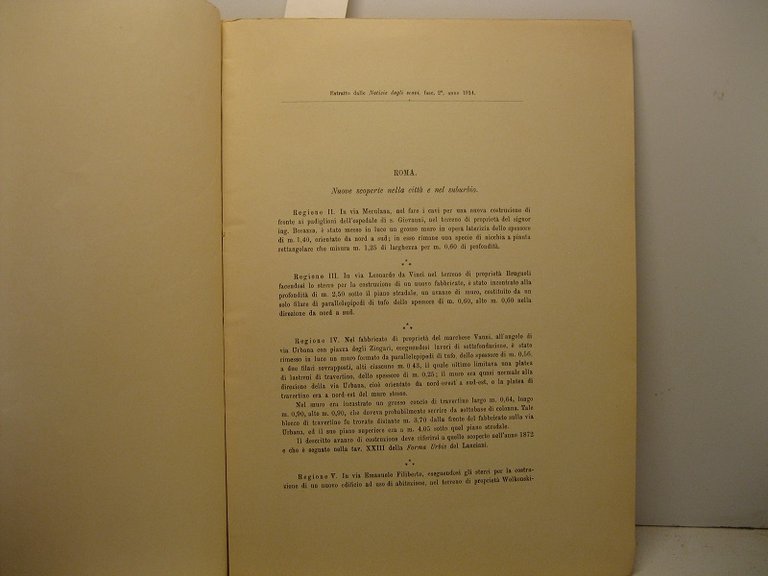 Roma. Nuove scoperte nella citta' e nel suburbio
