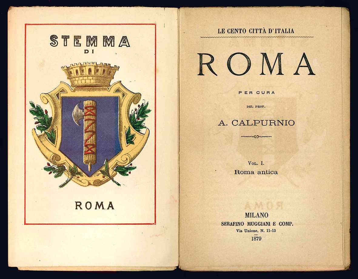 Un volume di due in 16mo (mm 156x102); pp. 126, [2], [1] c. di tav. fuori testo. Manca il secondo volume (Roma moderna). Carta uniformemente brunita. Lievi e sporadiche fioriture. Copertina editoriale illustrata. Timbro della biblioteca di Crema alla copertina anteriore. Tassello cartaceo riportante la collocazione al margine superiore del dorso. Bell'esemplare ancora a fogli chiusi.
