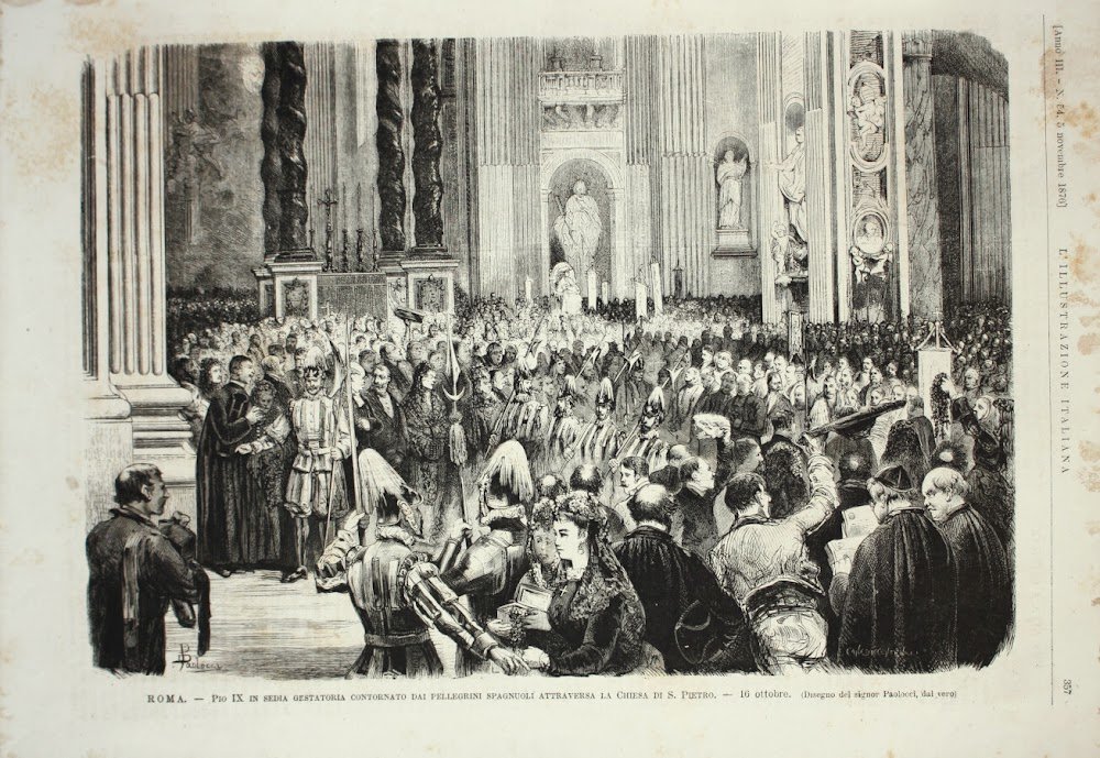 Roma. Pio IX in sedia gestatoria attaversa la Chiesa di S. Pietro. Stampa 1876