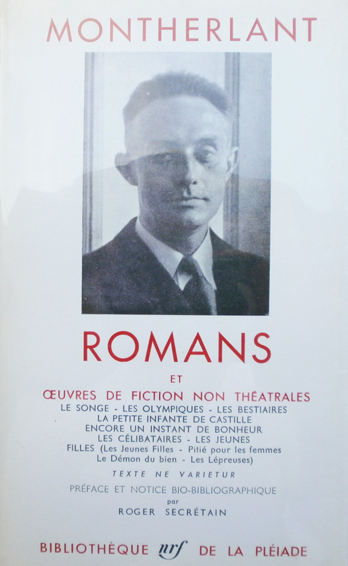 Romans et oeuvres de fiction non theatrales. Montherlant