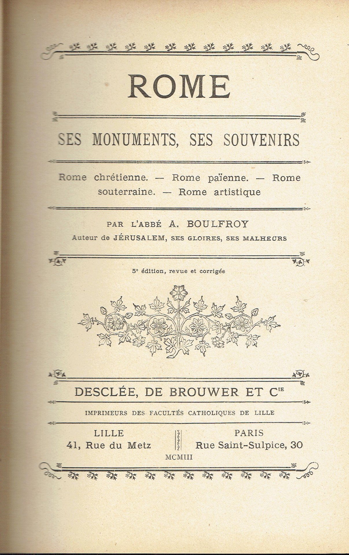 Desclée,Lille,1903. cartonato Ottimo (Fine) Ricopertinato in mezza tela con scritta in oro su dorso.Abrasioi lungo i lati dei piatti della copertina.Pieghe e abrasioni sulla parte sup. ed inf. del dorso.Brossura leggermente allentata verso la fine delle pagine.Ingiallimento delle pagine che non co.