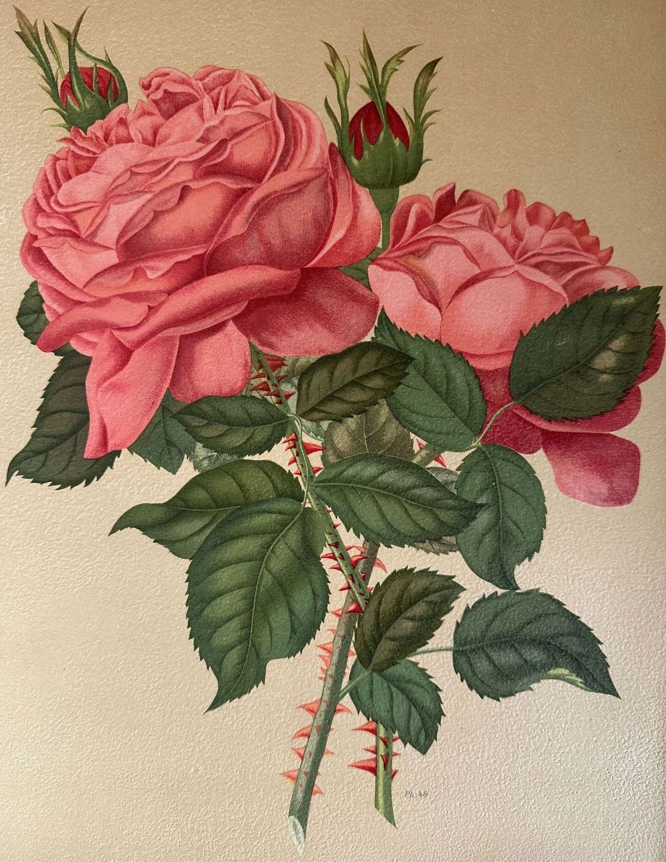 Cromolitografia del 1903 che mostra una varietà di rosa di Paul Auguste Hariot (1854-1917) celebre botanico. Di grandi dimensioni. Autore: Paul Auguste Hariot (1854-1917) Atlante: Le livre d'or des roses Data: 1903 Tecnica: cromolitografia Dimensione del foglio: 31,5x25 cm Dimensione incisione: 29x21,5 cm Condizioni: Buone. Rare fioriture. Chromolithography of 1903 showing a variety of rose by Paul Auguste Hariot (1854-1917) famous botany. Of big size. Author:Paul Auguste Hariot (1854-1917) Atlas:Le livre d'or des roses Date: 1903 Technique: chromolithography Leaf Dimension:31,5x25 cm Engraving Dimension:29x21,5 cm ,5Conditions: Good conditions. Some foxing.