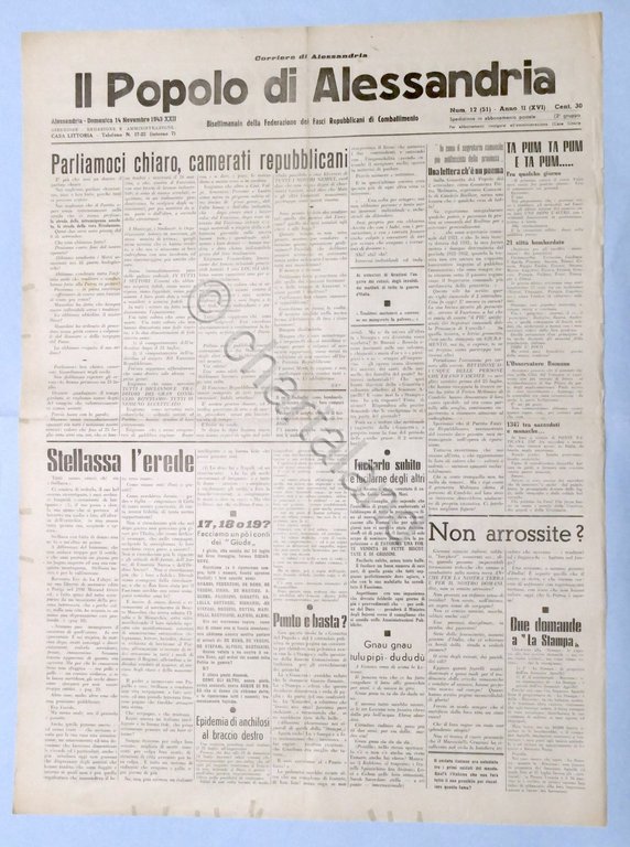 Il Popolo di Alessandria N. 12 - 1943 - Camerati Repubblicani
