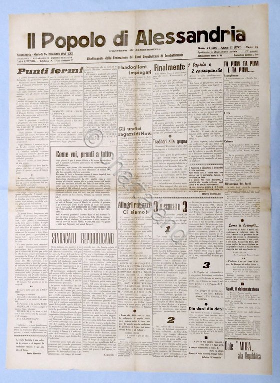Il Popolo di Alessandria N. 21 - 1943 - Sindacato Repubblicano