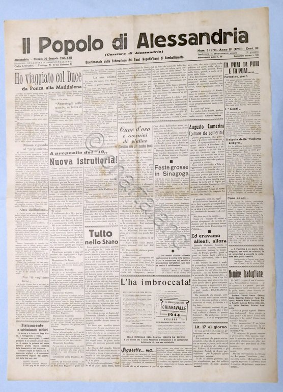 RSI Federazione Fasci - Il Popolo di Alessandria N. 31 - 1944 Nuova istruttoria