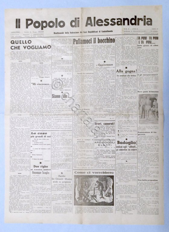 RSI Federazione Fasci - Il Popolo di Alessandria N. 65 - 1944 - Badoglio