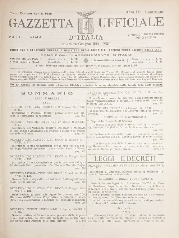 RSI Gazzetta Ufficiale d'Italia N. 148 - 1944