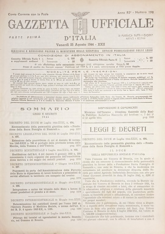 RSI Gazzetta Ufficiale d'Italia N. 198 - 1944
