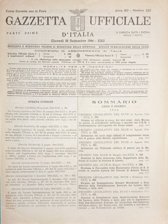 RSI Gazzetta Ufficiale d'Italia N. 227 - 1944
