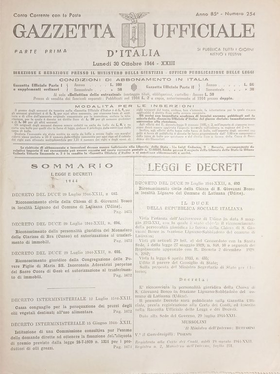 RSI Gazzetta Ufficiale d'Italia N. 254 - 1944