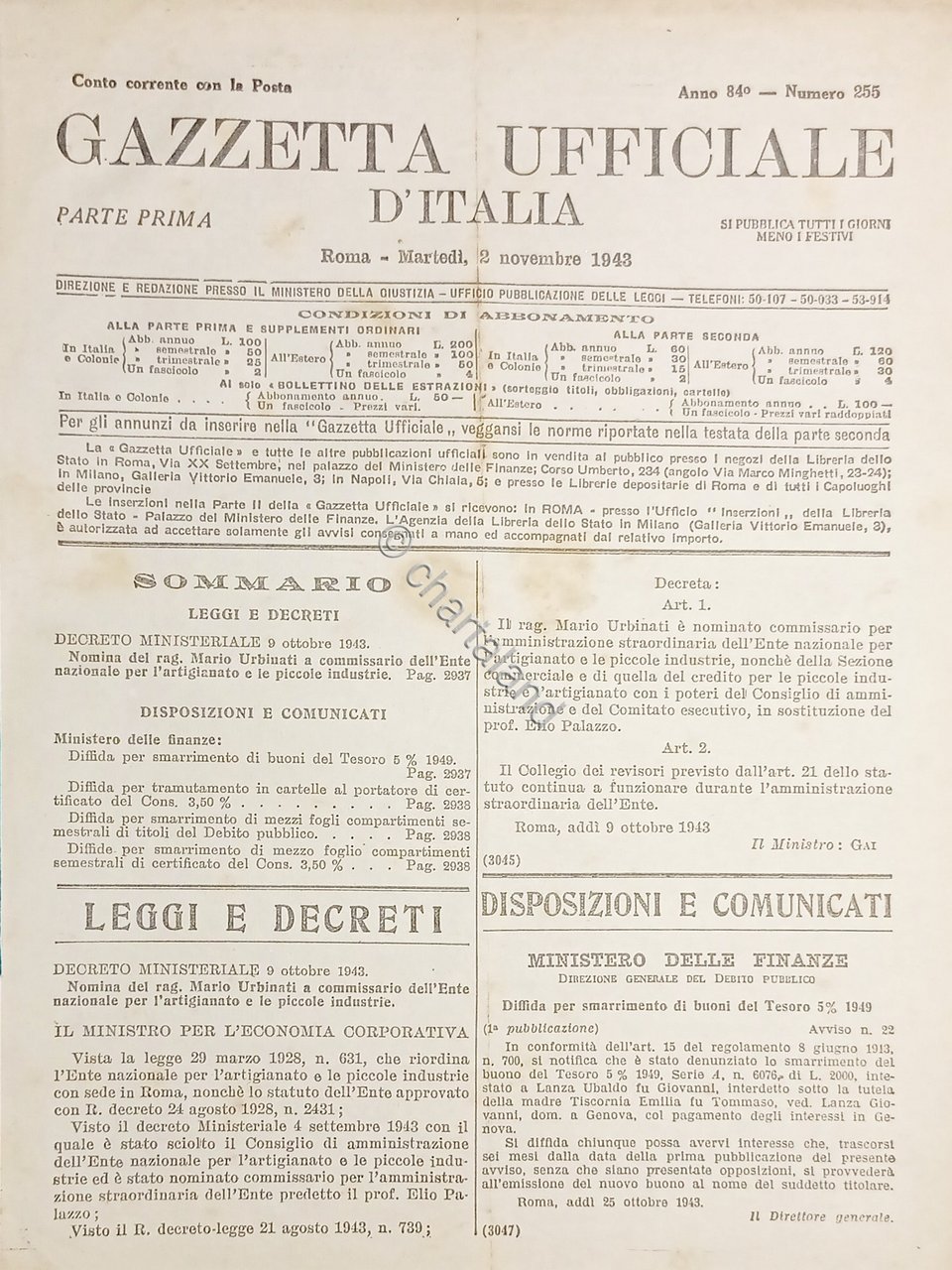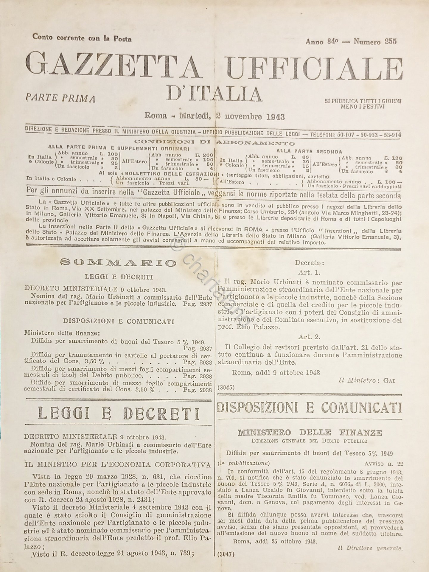 RSI Gazzetta Ufficiale d'Italia N. 255 - 1943