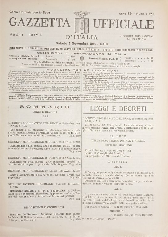 RSI Gazzetta Ufficiale d'Italia N. 258 - 1944