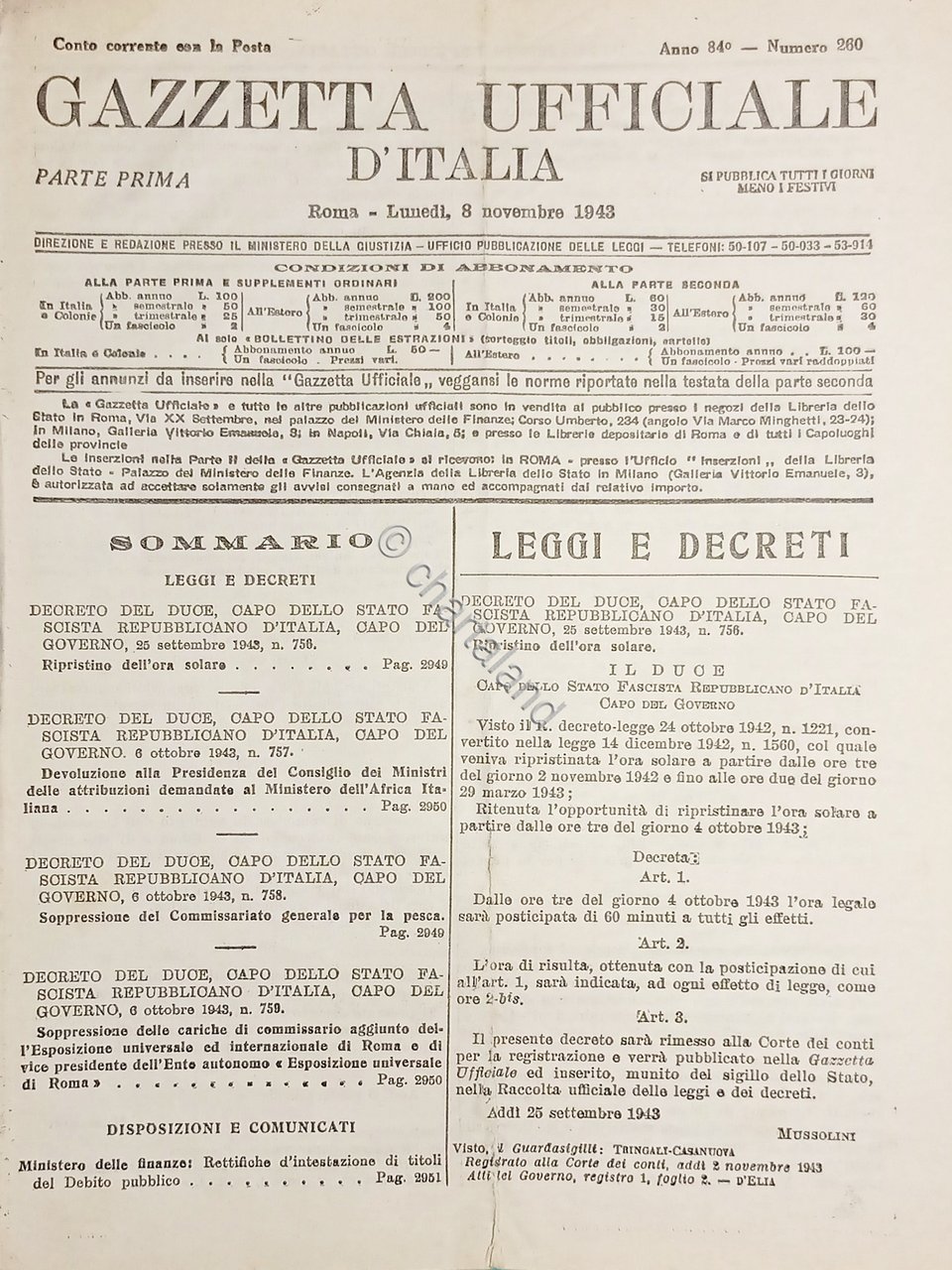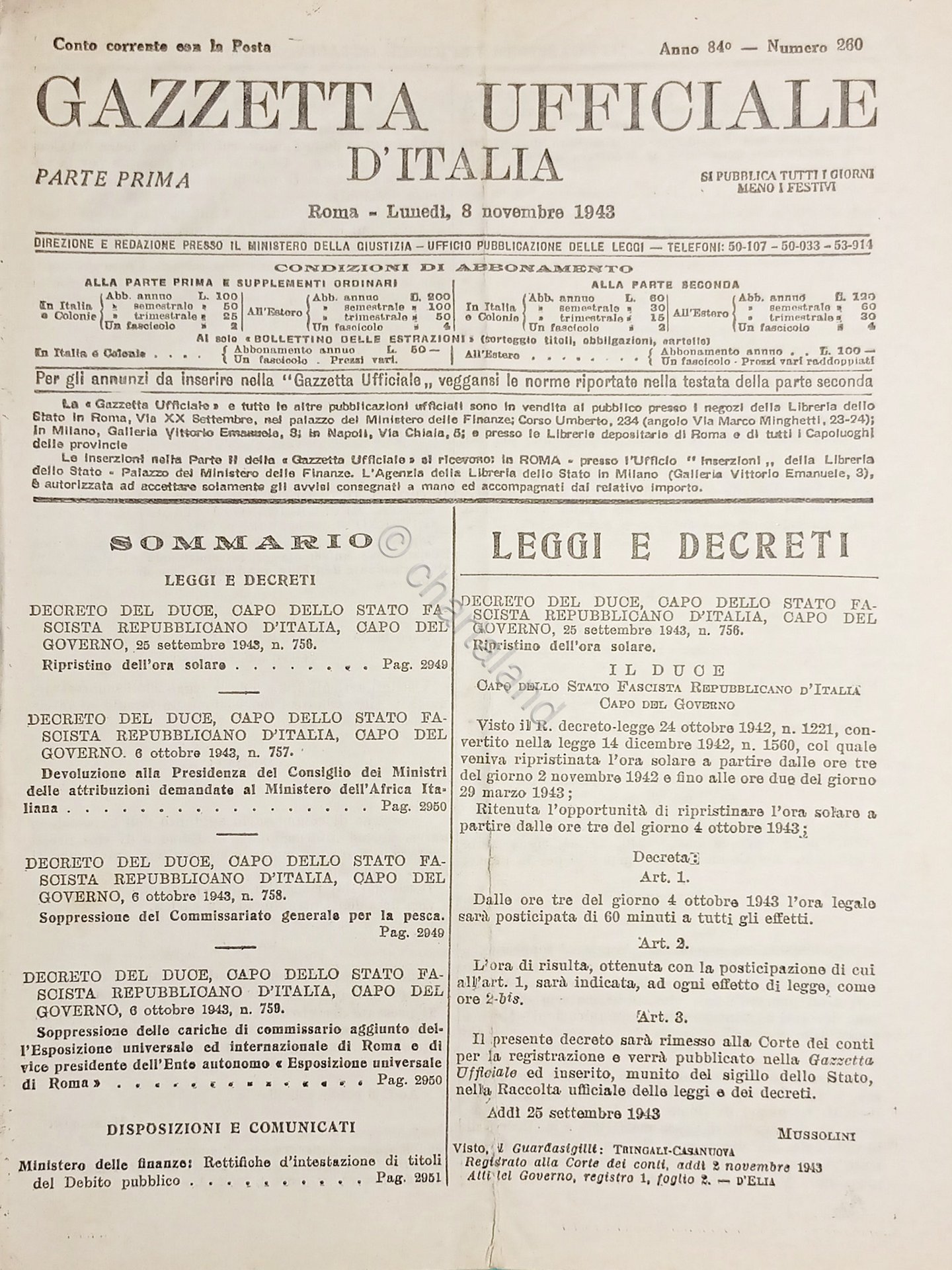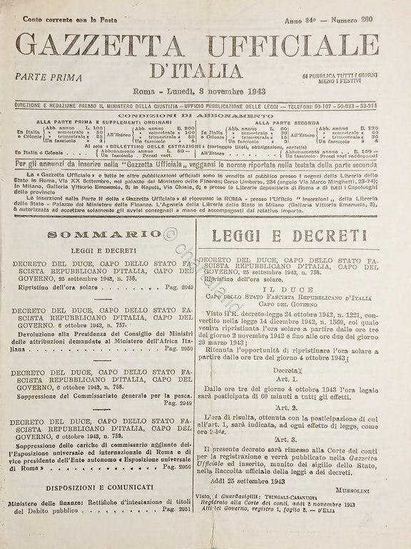 RSI Gazzetta Ufficiale d'Italia N. 260 - 1943