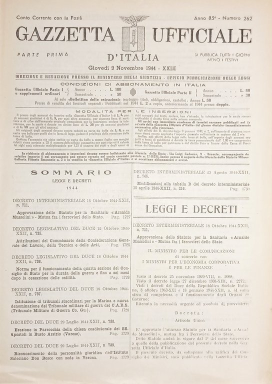 RSI Gazzetta Ufficiale d'Italia N. 262 - 1944