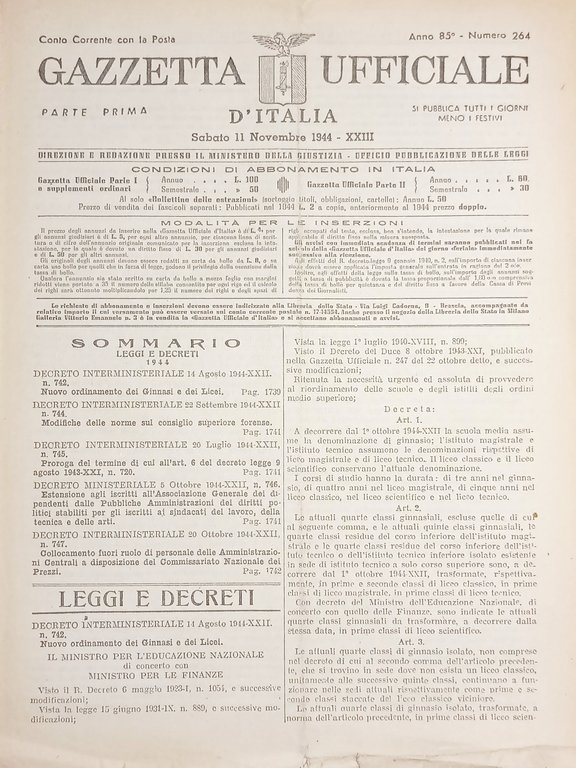 RSI Gazzetta Ufficiale d'Italia N. 264 - 1944