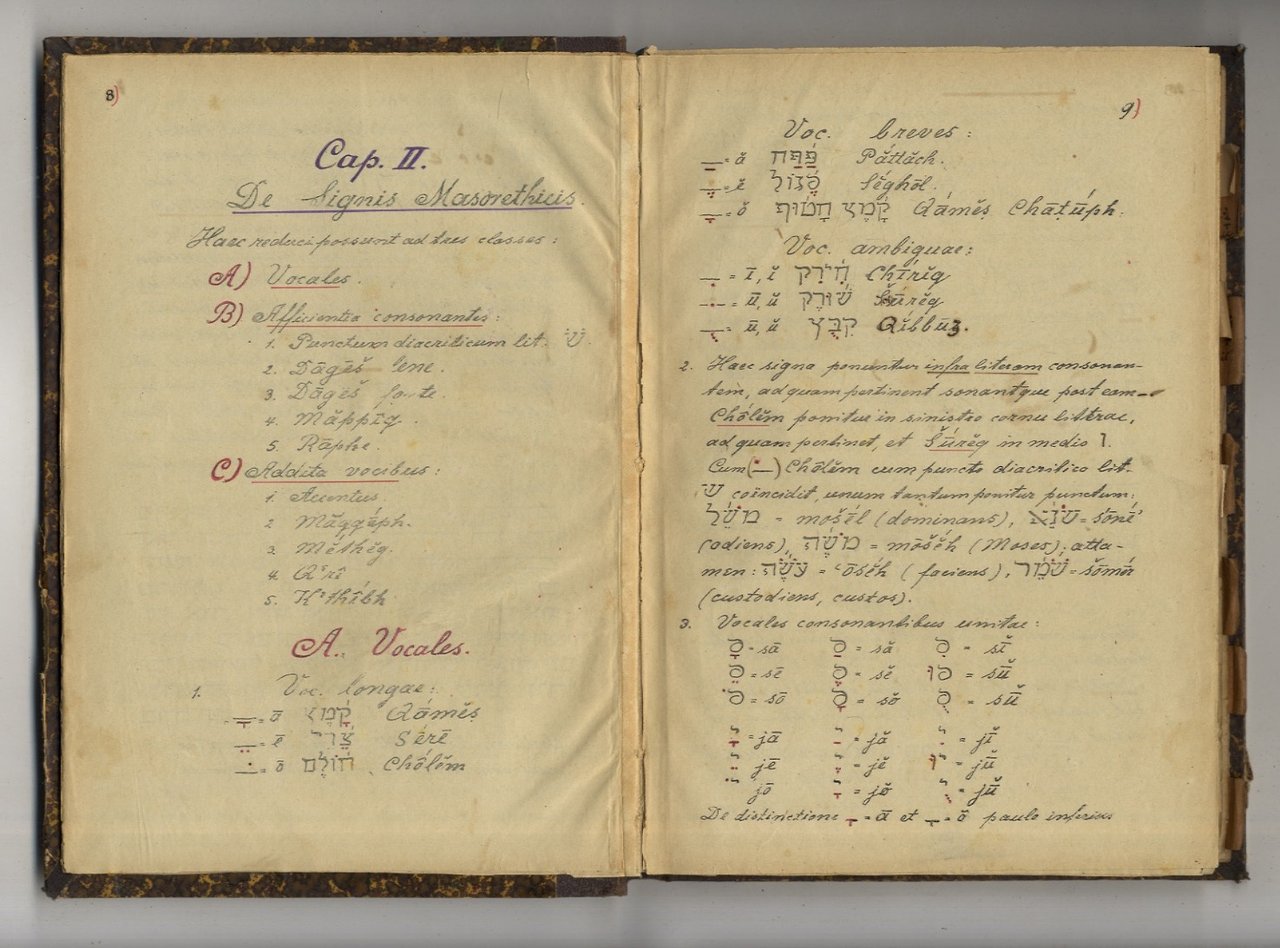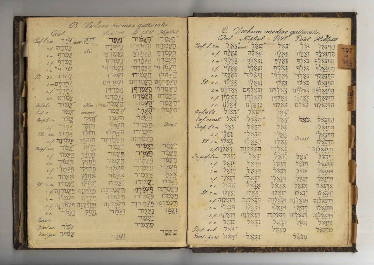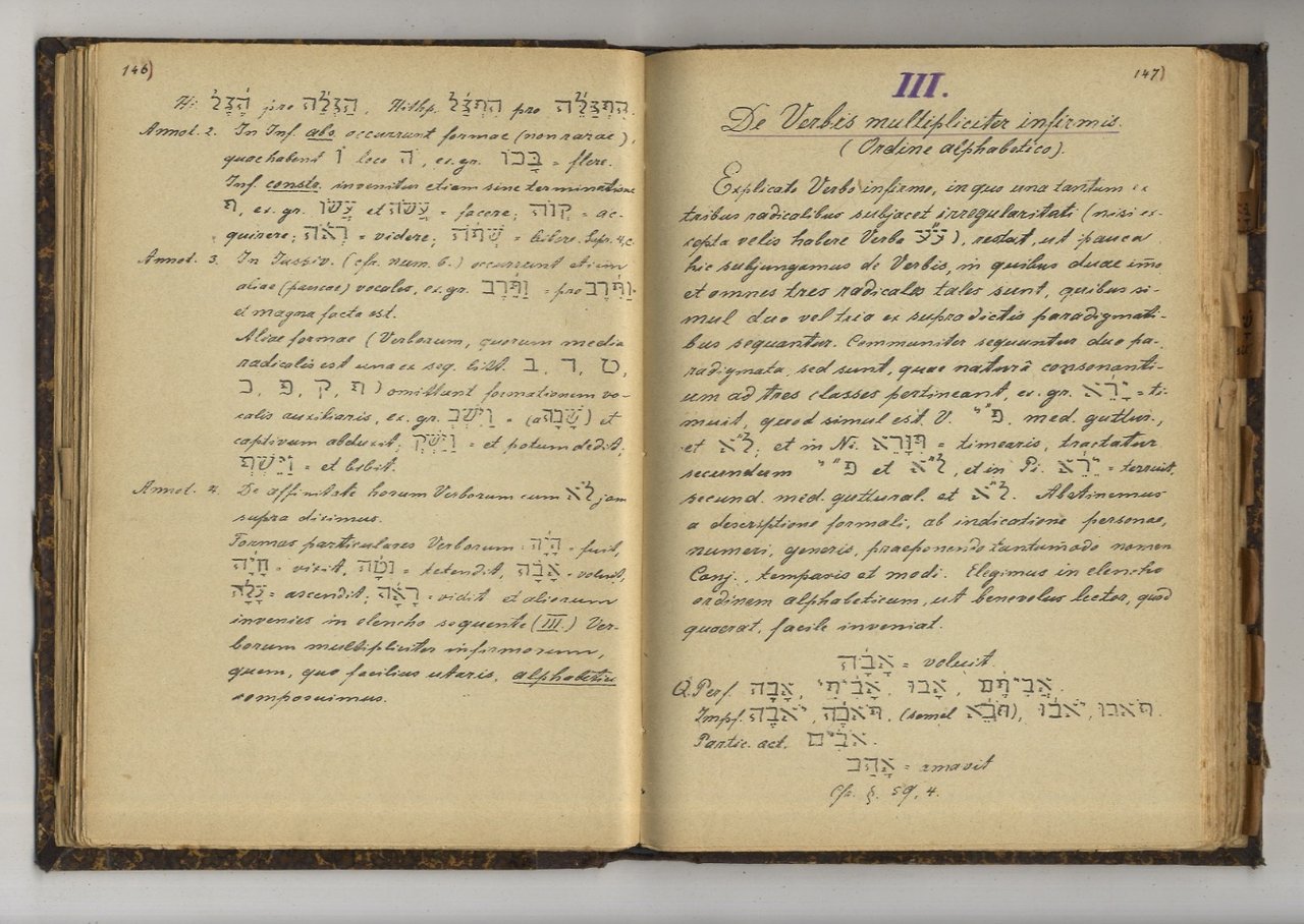 [S.l.], [s.n.t.], [primi del '900], in-8, legatura coeva in mezza tela, pp. 368, 34. Grammatica ebraica, in edizione litografica. Testo in latino e in ebraico.