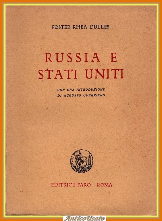 RUSSIA E STATI UNITI di Foster Rhea Dulles. con una introduzione di Augusto GuerrieroFaro Editore, 1945 . 233 pagine. Copertina editoriale in brossura. Stato di conservazione: molto buono (pagine normalmente ingiallite, manca la sovraccoperta) Libro usato saggistica politica